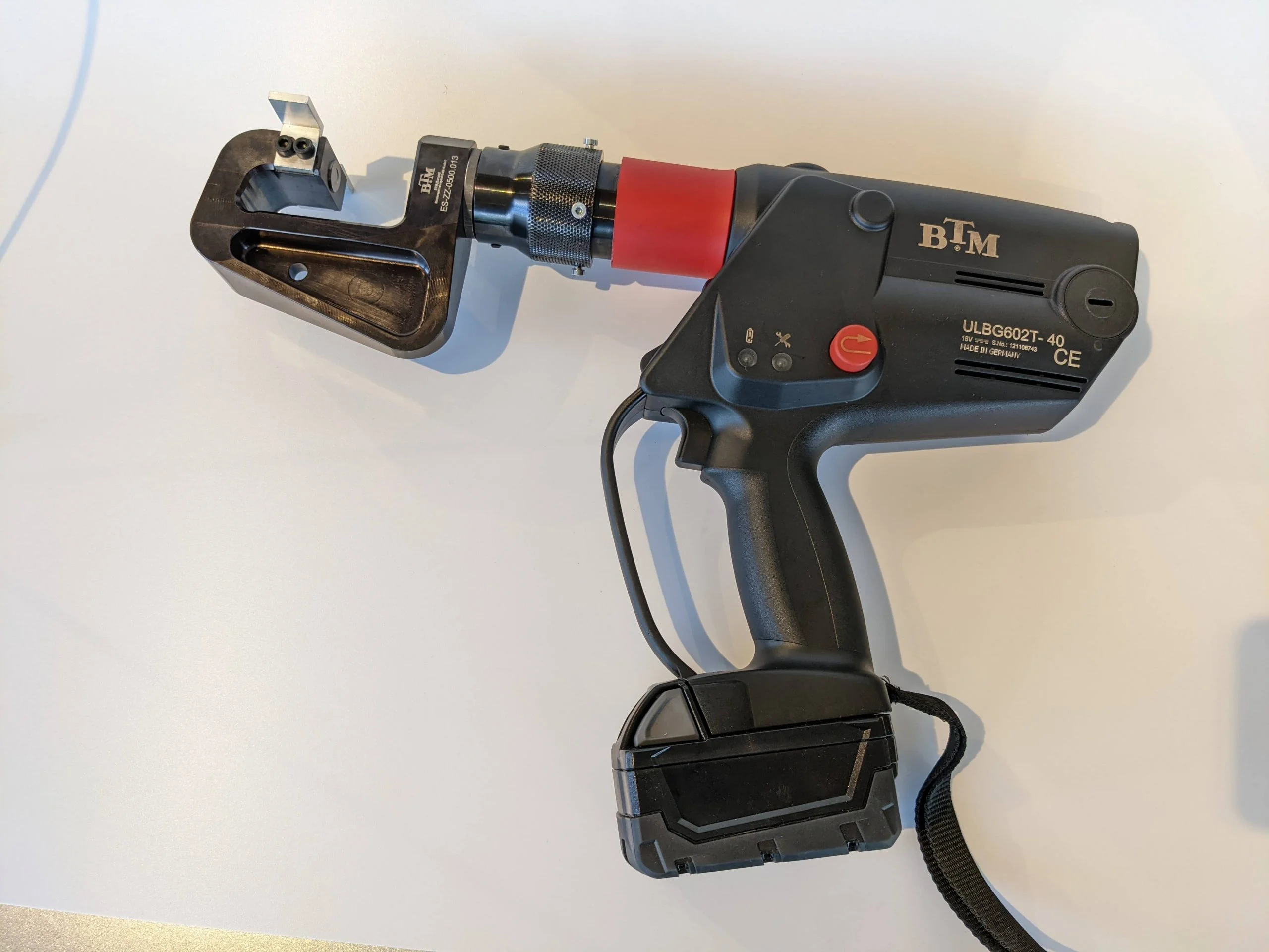 Die mobilen Stanzgeräte der Baureihe ULBG 602 zeichnen sich durch die hohe Presskraft von 60 kN bei sehr leichtem Handlingsgewicht aus. Die ergonomische Griffführung der Antriebseinheit runden das Gesamtbild der Zange ab.