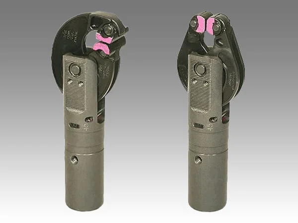 Die Anbindung kann als Fußflansch heckseitig oder 360° drehbar über den zylindrischen Grundkörper erfolgen und bietet alle Freiheitsgrade. Induktive Abfragesets verschiedener Hersteller sind lieferbar und können beidseitig am PG-45 montiert werden. Selbst ausrichtende Spannbacken glatt oder verzahnt für unterschiedliche Blechdicken, die auch reversibel bestückt werden können, führen immer zu optimalen Klemmverhältnissen ohne Abdrücke zu hinterlassen.