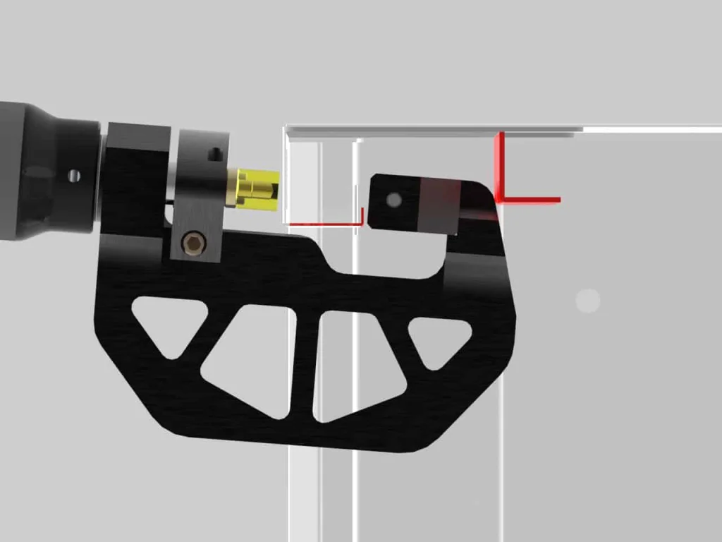 Der mobile Akkuantrieb ULBG 601/602T-40 mit 40 mm Hub ist die Basis für eine weitere Doppelochzange gewesen. Um für eine anschließende Griffmontage in einer verwinkelten Schubladengeometrie zwei Löcher mit Durchmesser 7mm einzubringen wurde eine ultraleichte C-Bügelkonstruktion gewählt. Dazu wurde aus ergonomischen Gründen und zur besseren Handhabung der C-Bügel als Fachwerkkonstruktion ausgeführt. Dieser Leichtbaubügel bietet dem Bediener eine ermüdungsarme und ergonomiche Handhabung.