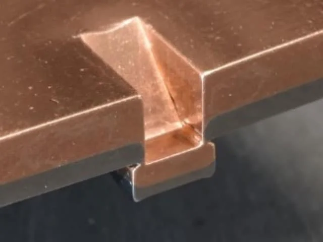 The final result is a joint with a greater width than the drawn section of the metals. This accounts for the high strength of Lance-N-LocĀ® joints. The entire sequence takes place in a single press stroke.