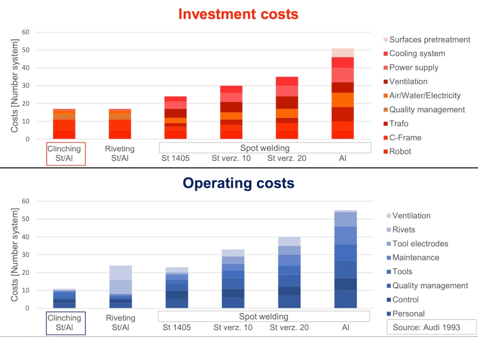 Bajos costes energéticos, así como costes de producción reducidos, sin necesidad de usar remaches ni material de aporte para soldadura, y sin preparación ni acabado previo de las piezas.